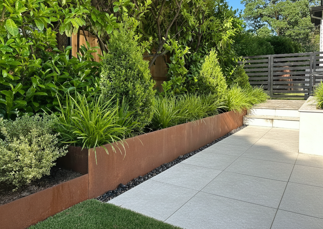 Corten is an investment in permanence. In our environment, Corten outlasts conventional steel by decades. While standard steel might rust through in 10–15 years, a properly executed Corten feature is designed to last 50 to 100 years.